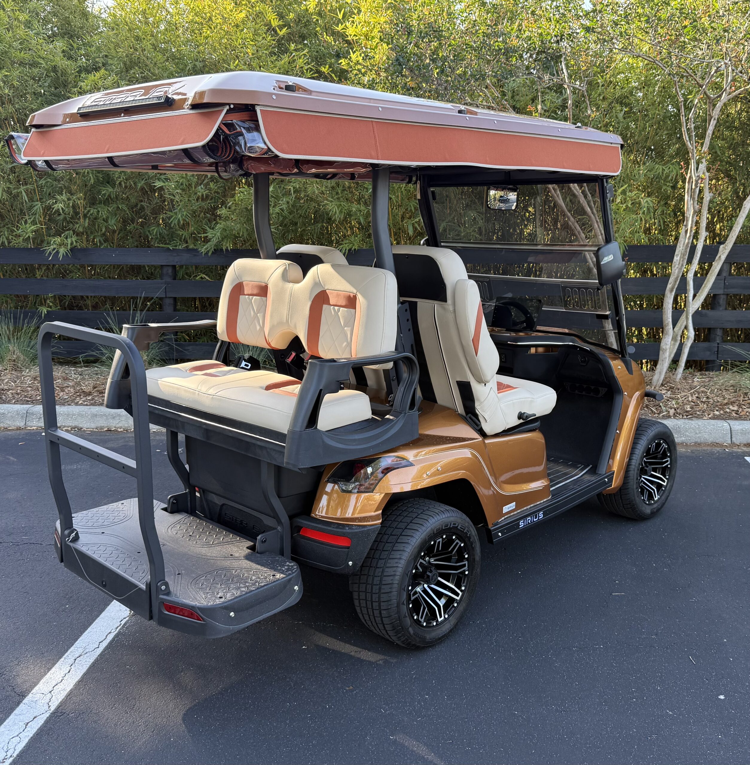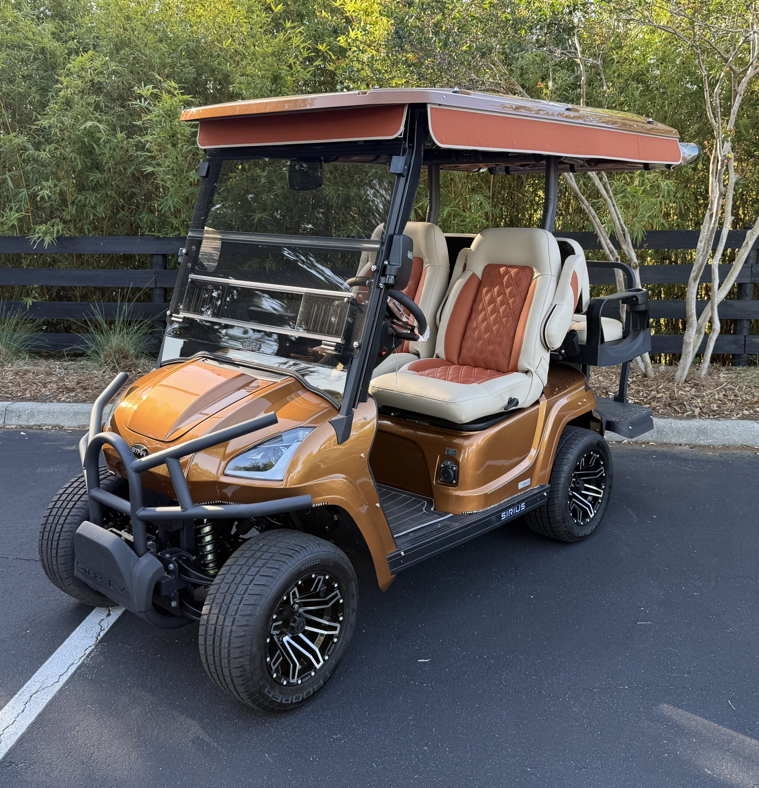 | Additional Accessories | <ul><li>El Tigre Sirius Texas Sportster</li><li>Custom Paint</li><li>Front Overhead Storage Tray</li><li>Factory Premium Plus Rear Seat Cover</li></ul> <ul><li>Bracket for Storage Tray</li><li>Double Diamond Stitch Upcharge</li><li>Paint Sirius 2+2 Est Roof</li><li>Inside Bag Attachment</li></ul> <ul><li>Brush Guard Sirius w/hardware</li><li>Turn Signal Safety Light</li><li>Turn Signal Safety Light</li></ul> |