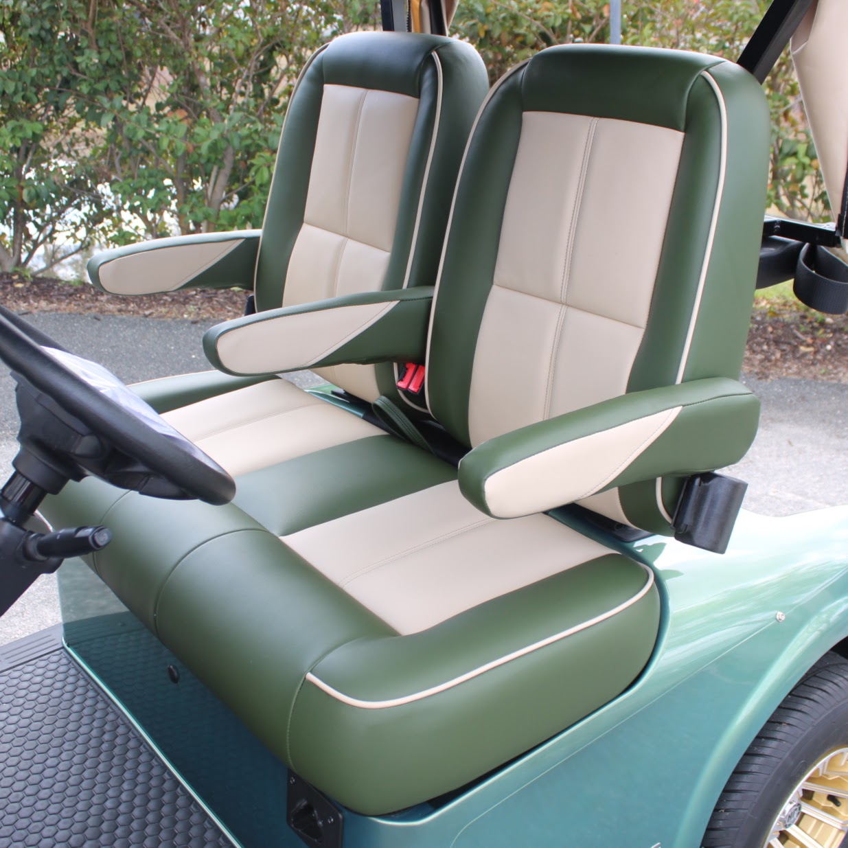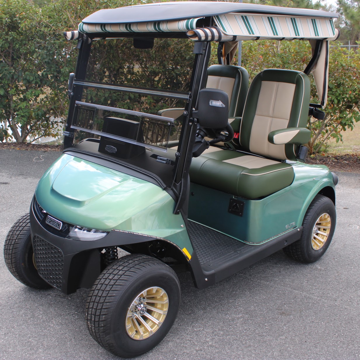 | Additional Accessories | <ul><li>Turn Signal Safety Light</li></ul> <ul><li>Backspin Crossover Bench Bucket Seat</li></ul> <ul><li>LL CUSTOM PAINT CANDIES STREAK FLAMES OR FIRE, EZGO RXV ELEC COWL & REAR</li></ul> |