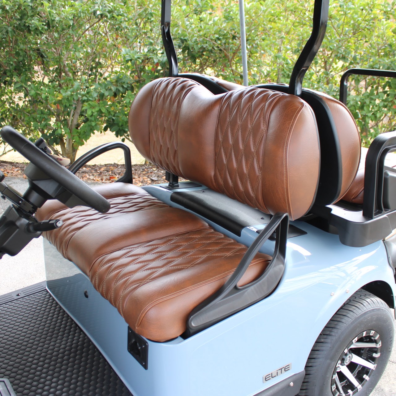 | Additional Accessories | <ul><li>WINDSHIELD SPLIT VENTED TINTED CLEAR HINGE EZGO RXV 2024 +</li><li>Signature Amarillo Brown RFS Seat RXV</li></ul> <ul><li>CURVED LIGHT BAR, STOP-TURN REAR LED – EZGO MODULAR CANOPY</li><li>10" Wheel 8-Spoke Machined Black</li></ul> <ul><li>Signature Amarillo Brown Seat RXV </li></ul> |